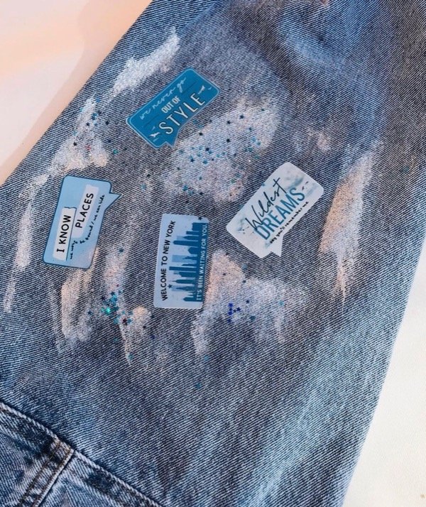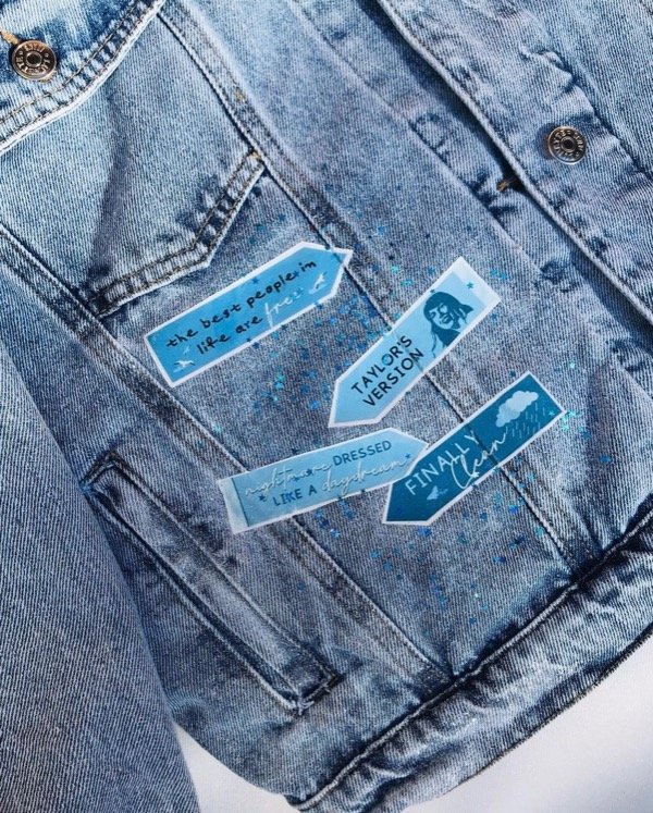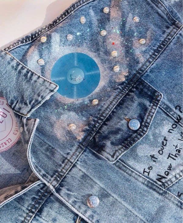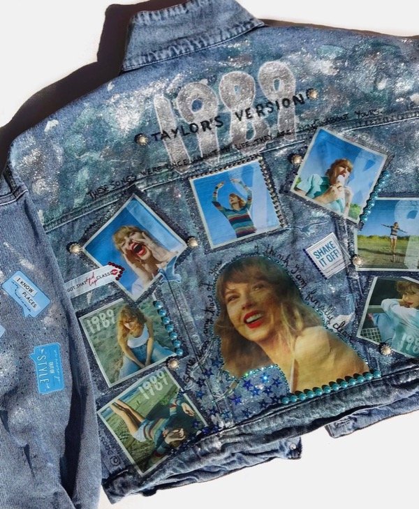 Campera 1989 con parches de DTF,strass,piedras y media perla. Detalles en glitter y pintura tornasol. Este un producto personalizable, la de la imagen es una campera oversize, por lo que podes pedirla así (50 CM de hombro a hombro, unisex) o en un talle en especifico. Envio Gratis
