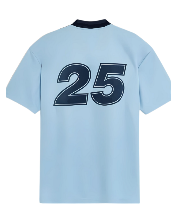 Chomba CELESTE Y AZUL inspirada en la colección Oasis y Adidas. Material: Poliester. Estampa Sublimada. Talles en foto 3, por favor aclarar talles en notas del pedido.